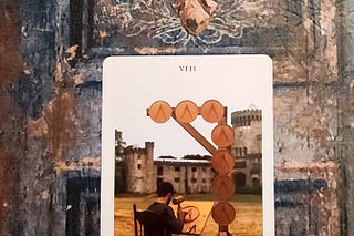 When I look at the Seven of Wands, I see myself: a small figure holding one staff against a sudden wall of seven.